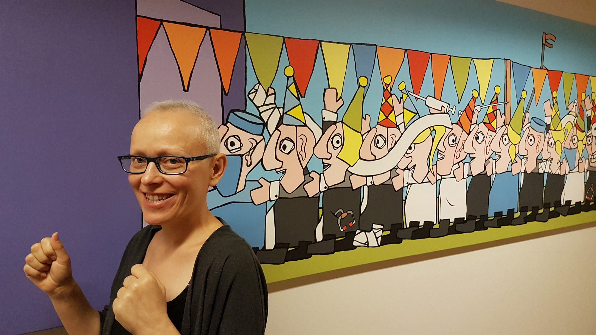 Reden voor een klein feestje, samen met Bob, in het Martini. Het schilderij waar ik in augustus 2016 (na de chemo’s en operatie) en in januari 2017 (na de bestralingen en immuuntherapie) bij stond, hangt er nog. Maar nu ik de foto’s van toen er weer bij pak, zie ik dat we vanochtend toch het verkeerde schilderij hebben uitgekozen. Zoek de verschillen: